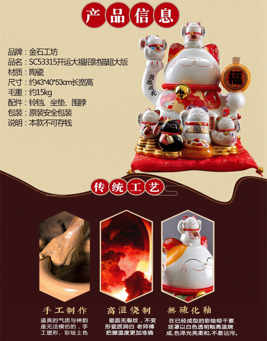 【金石工坊】開運大福陶瓷招財貓(高52CM)超大版招財貓