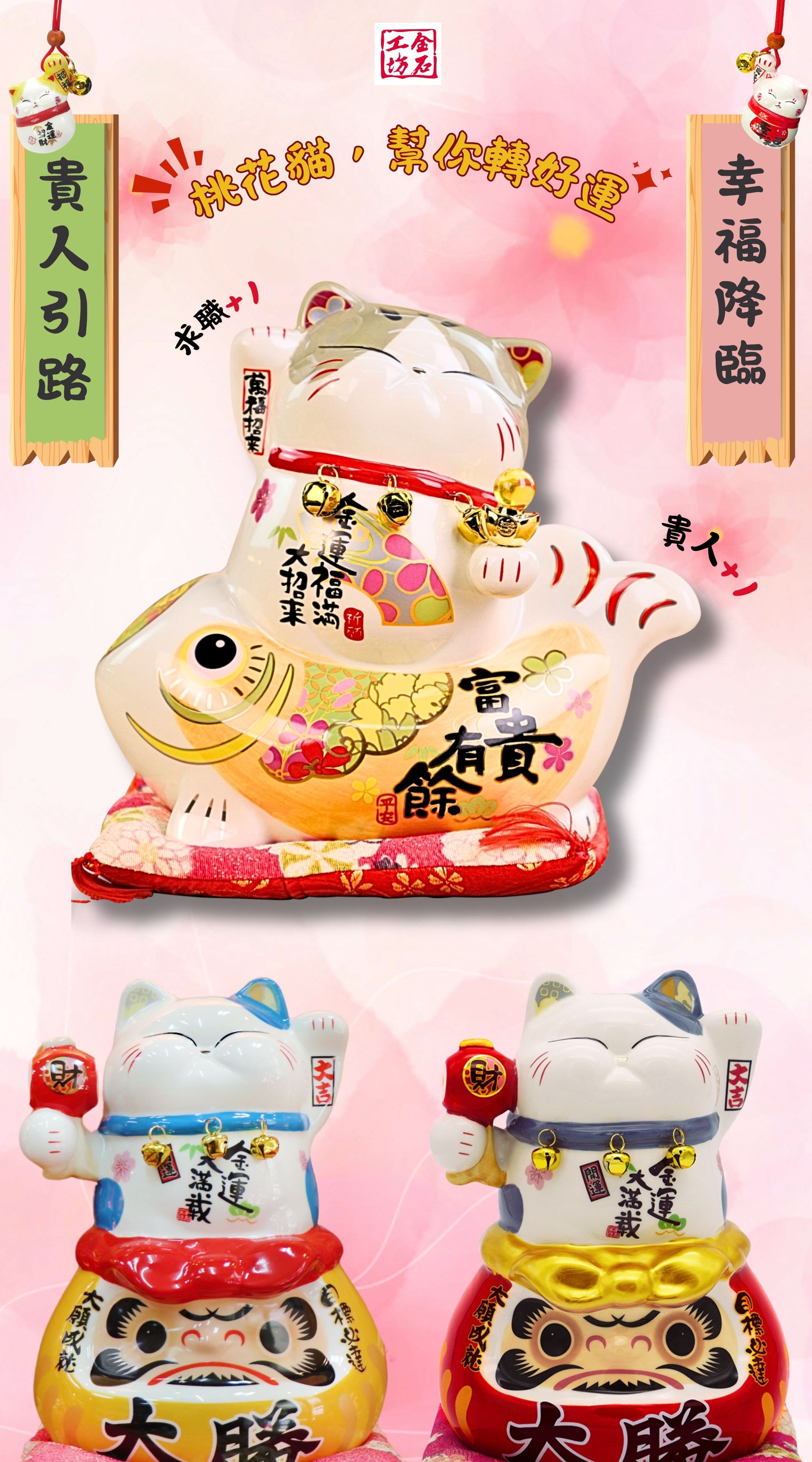富貴有餘 抹茶波士桃花貓 (高19.5CM)